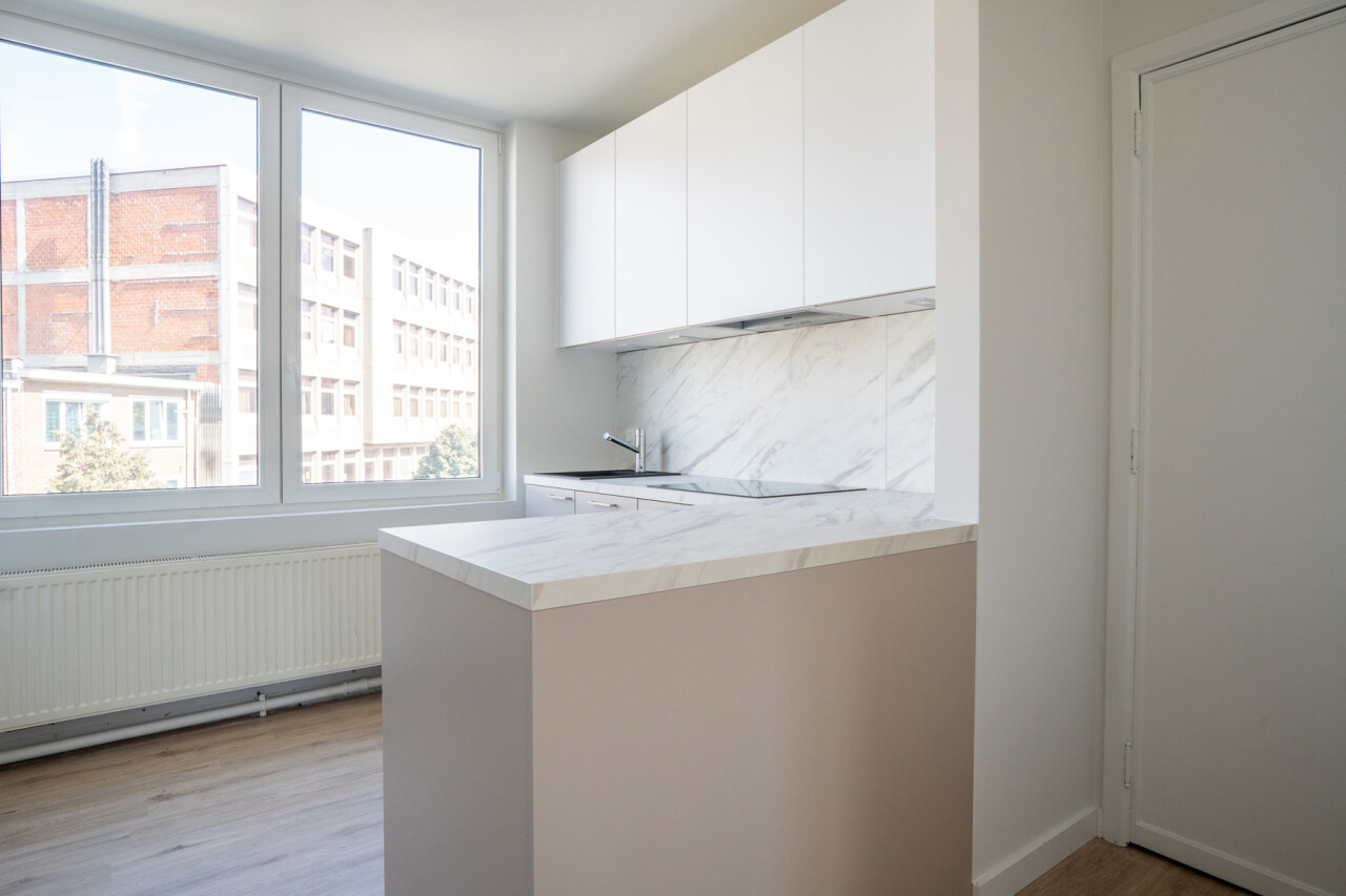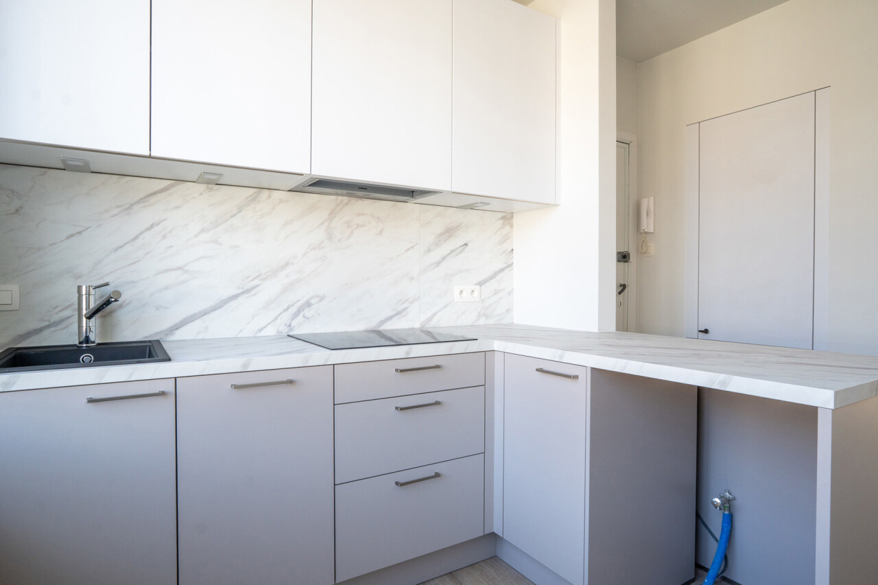 Leefruimte, uitgeruste keuken, één slaapkamer (met ingemaakte kasten), badkamer met douche en lavabo en er is ook een afzonderlijk toilet aanwezig. Geen maandelijkse lasten.