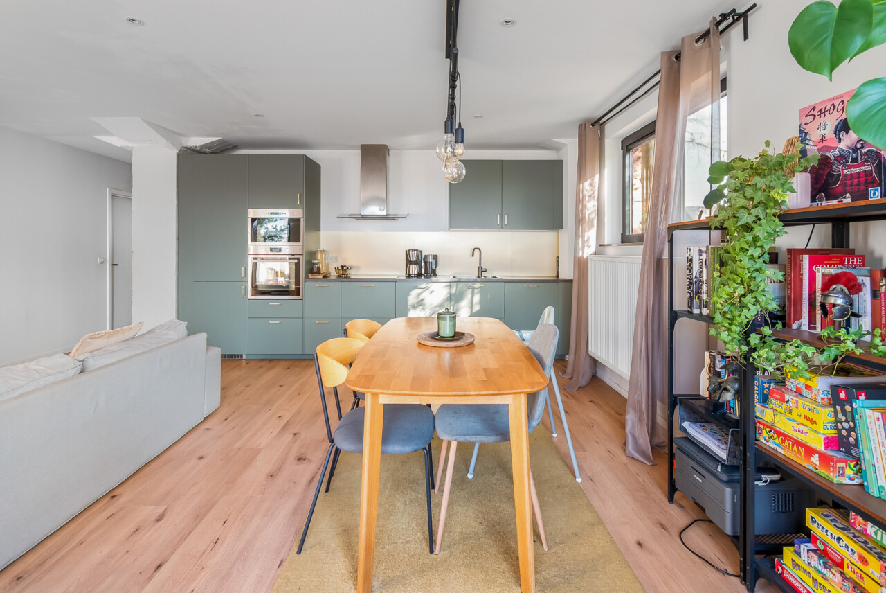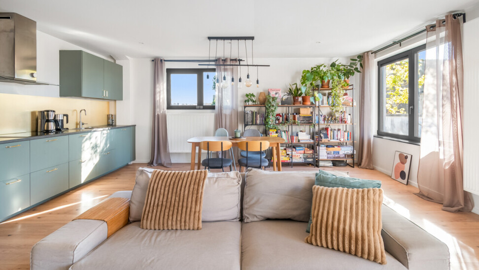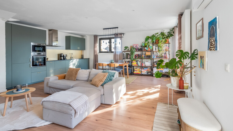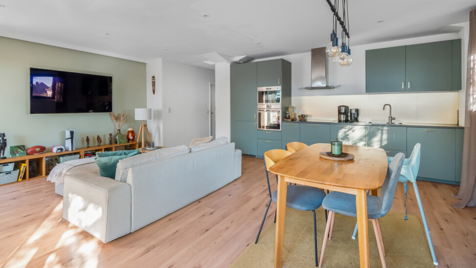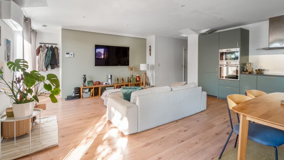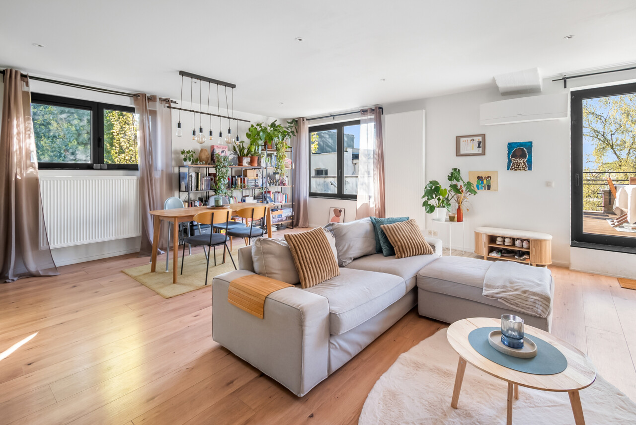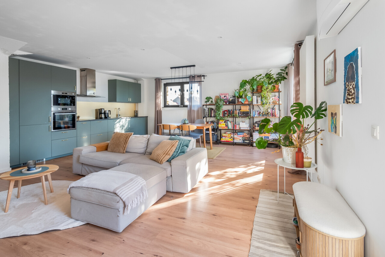 Vernieuwde penthouse van 101 m², gelegen op de tweede verdieping van een kleinschalige mede-eigendom, met een ruim zuid-georiënteerd terras.