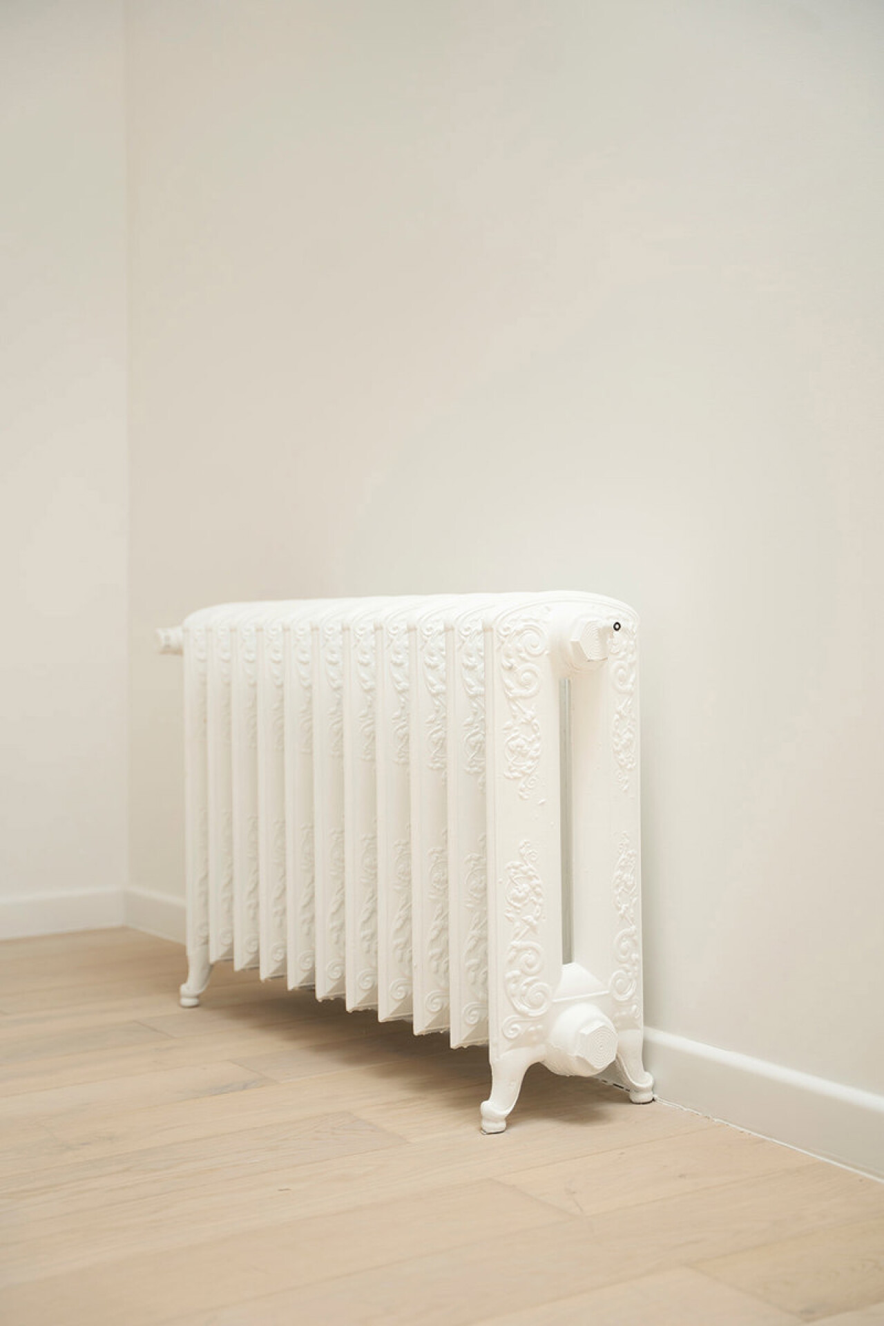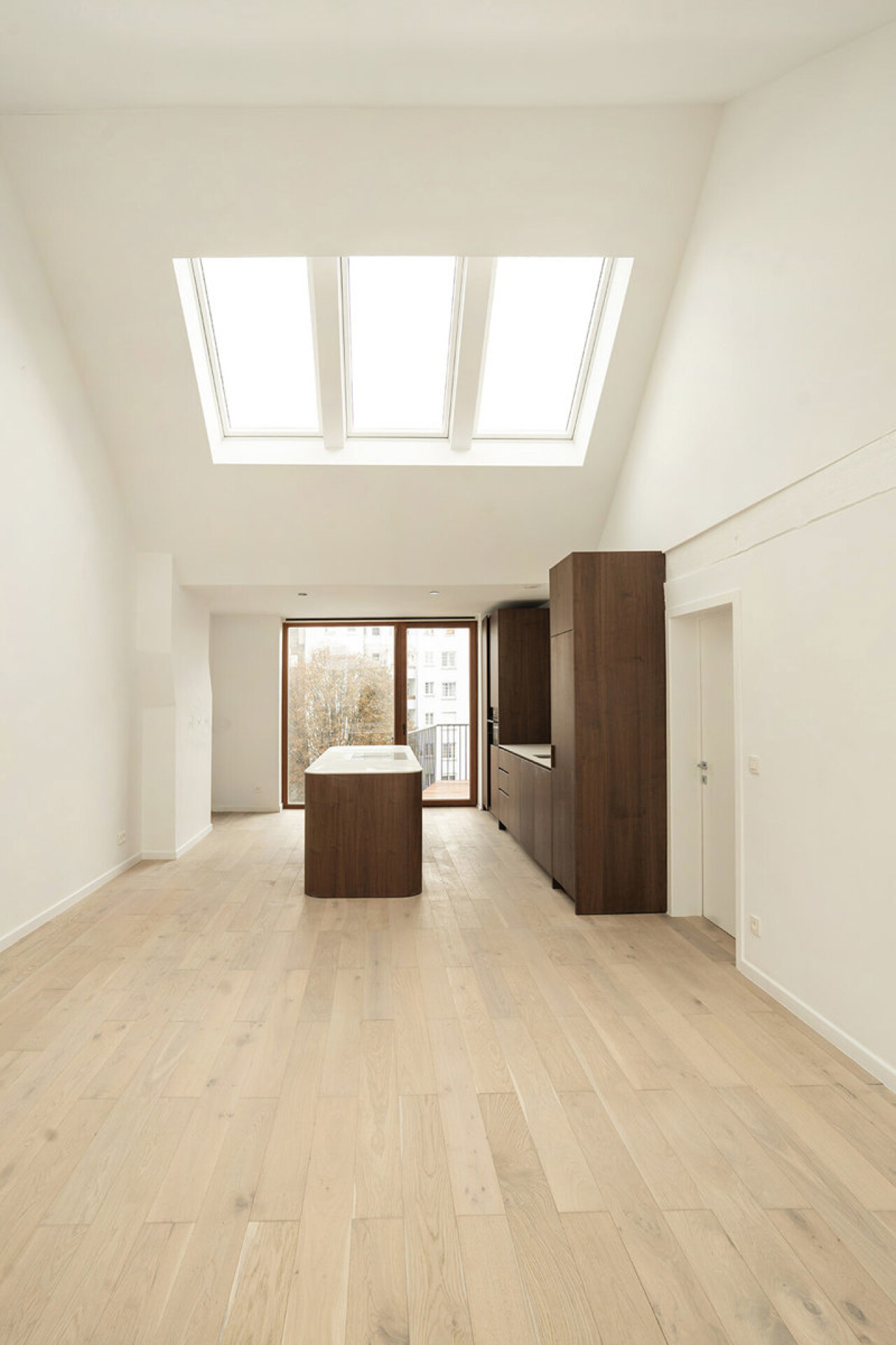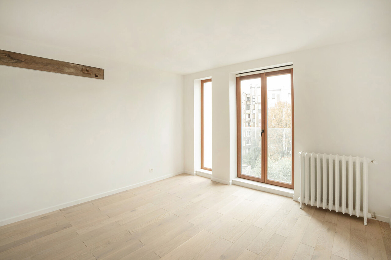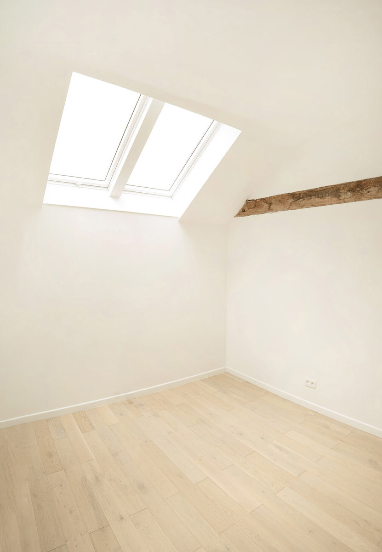 Wat dit appartement extra bijzonder maakt, zijn de authentieke elementen die behouden zijn gebleven: zo werden de originele houten balken en sierlijke gietijzeren radiatoren met zorg gerestaureerd, wat bijdraagt aan de unieke charme van de woning.