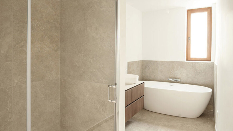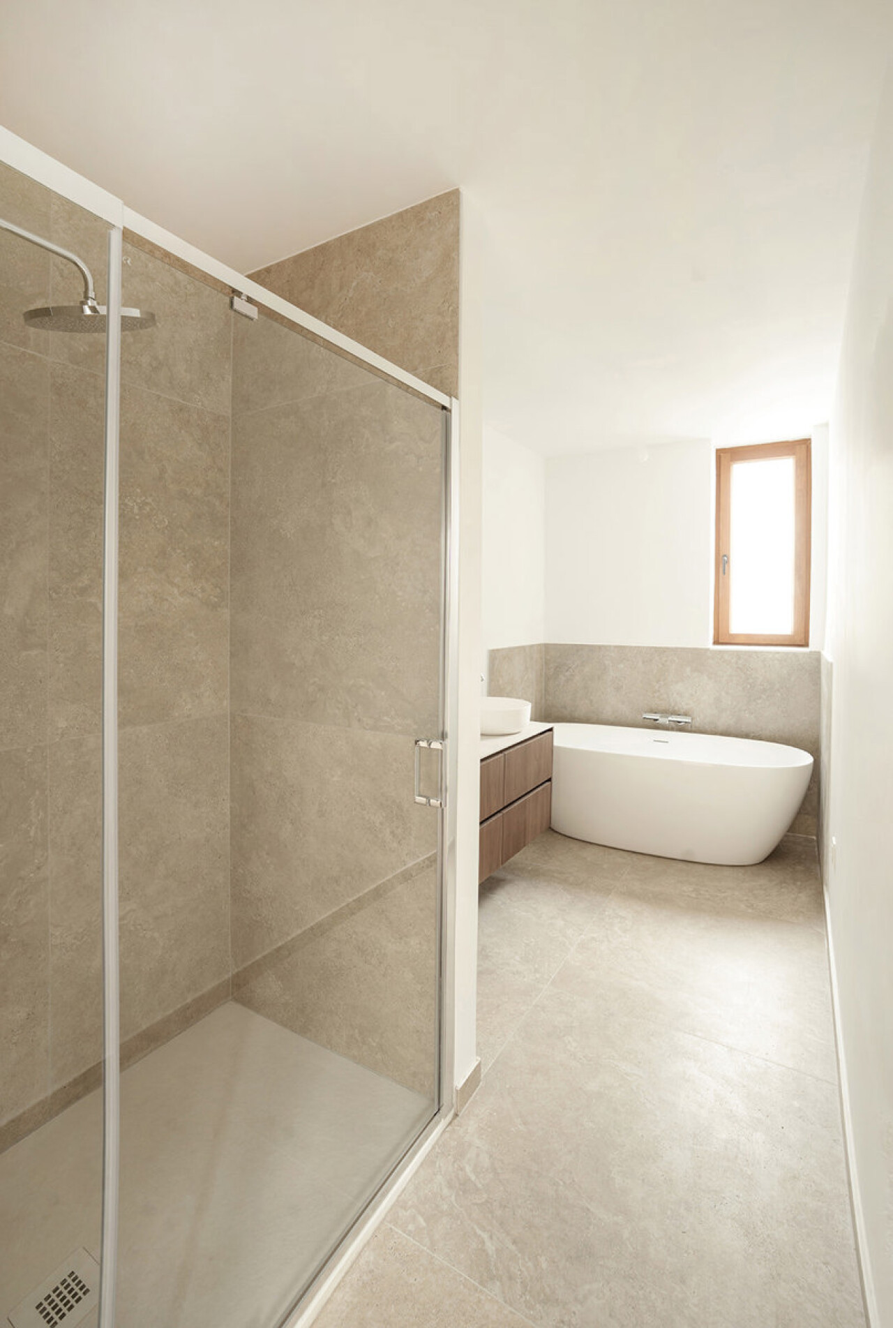 Aan de linkerzijde van het appartement bevinden zich drie ruime slaapkamers. De aparte badkamer is uitgerust met een inloopdouche, dubbele lavabo en een royaal bad. De tweede badkamer, die zich tussen de twee overige slaapkamers bevindt, is eveneens uitgerust met een inloopdouche en een enkele lavabo – perfect voor gezinnen of gasten.