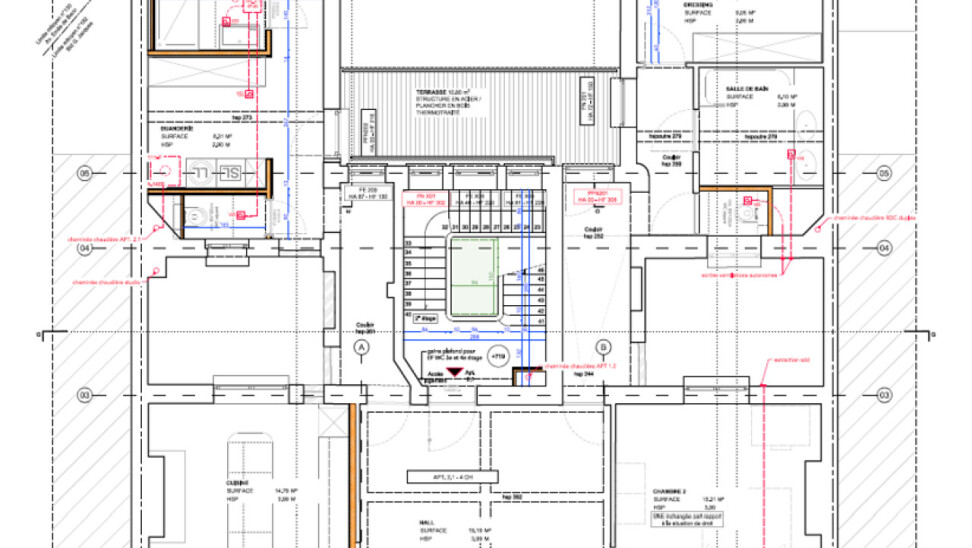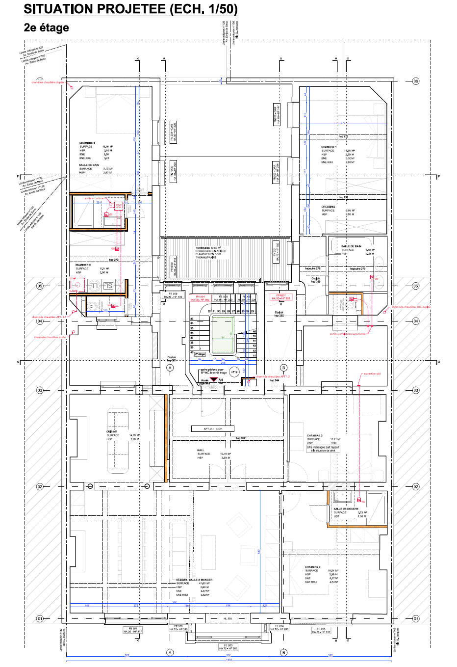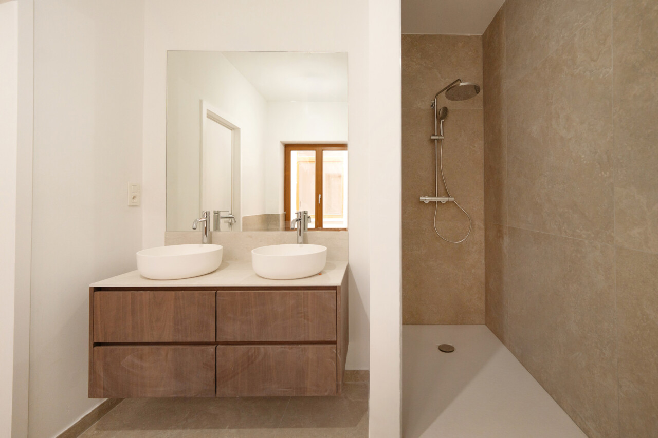 Aan de rechterzijde bevindt zich een gang die toegang geeft tot het terras. Langs deze gang vindt u een badkamer, een apart toilet, een dressing en een derde slaapkamer. Aan de overzijde bevinden zich nog een technische ruimte, een tweede badkamer en een vierde slaapkamer — perfect voor gezinnen of voor het ontvangen van gasten.