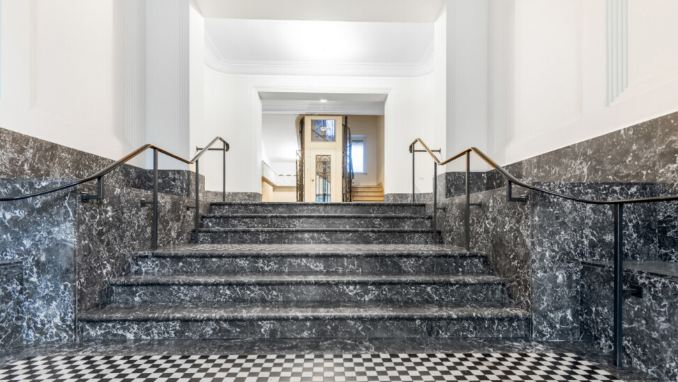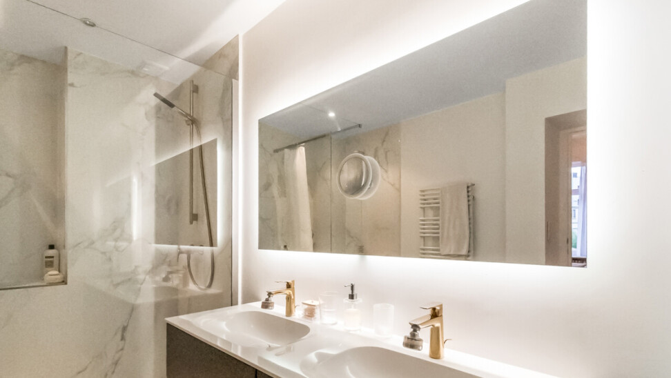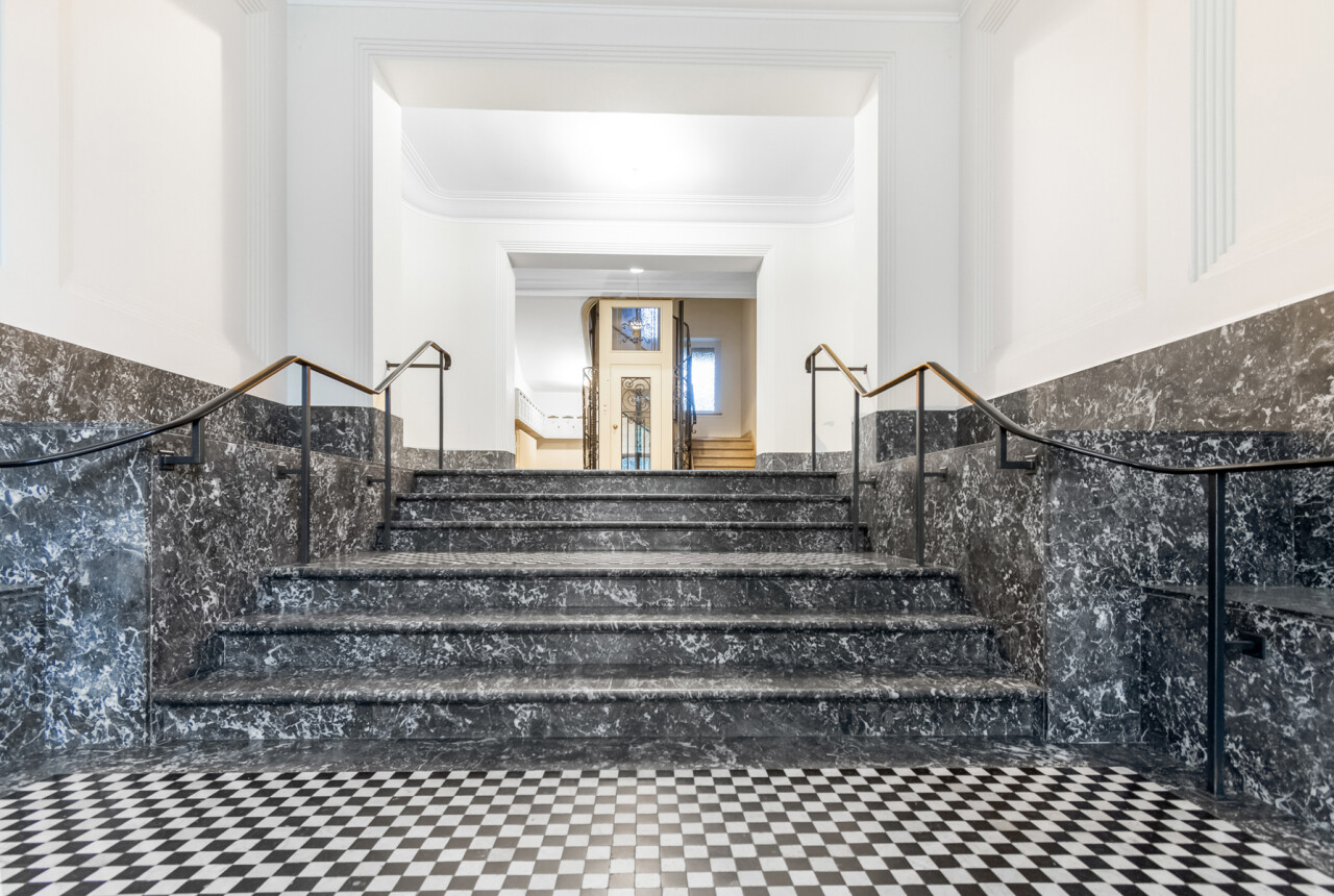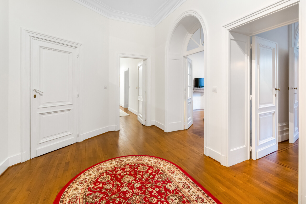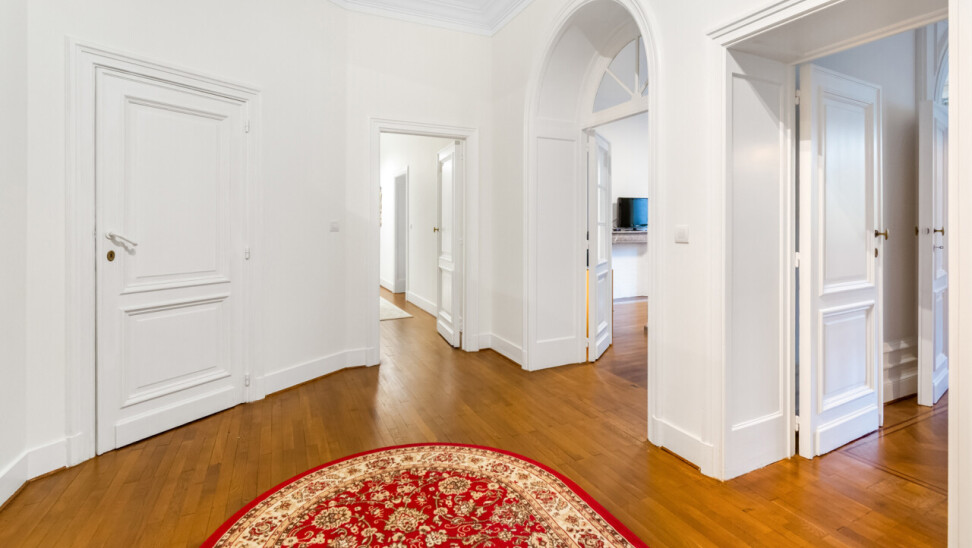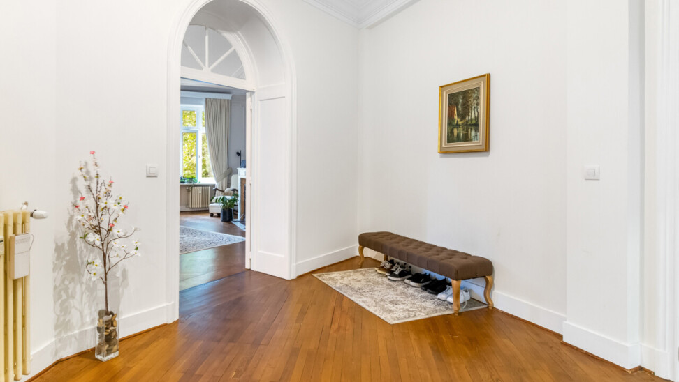 Bij het betreden van de ruime en indrukwekkende inkomhal word je onmiddellijk ondergedompeld in een sfeer van verfijning en tijdloze klasse.