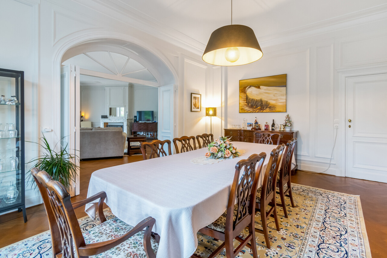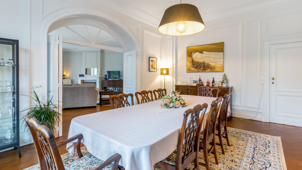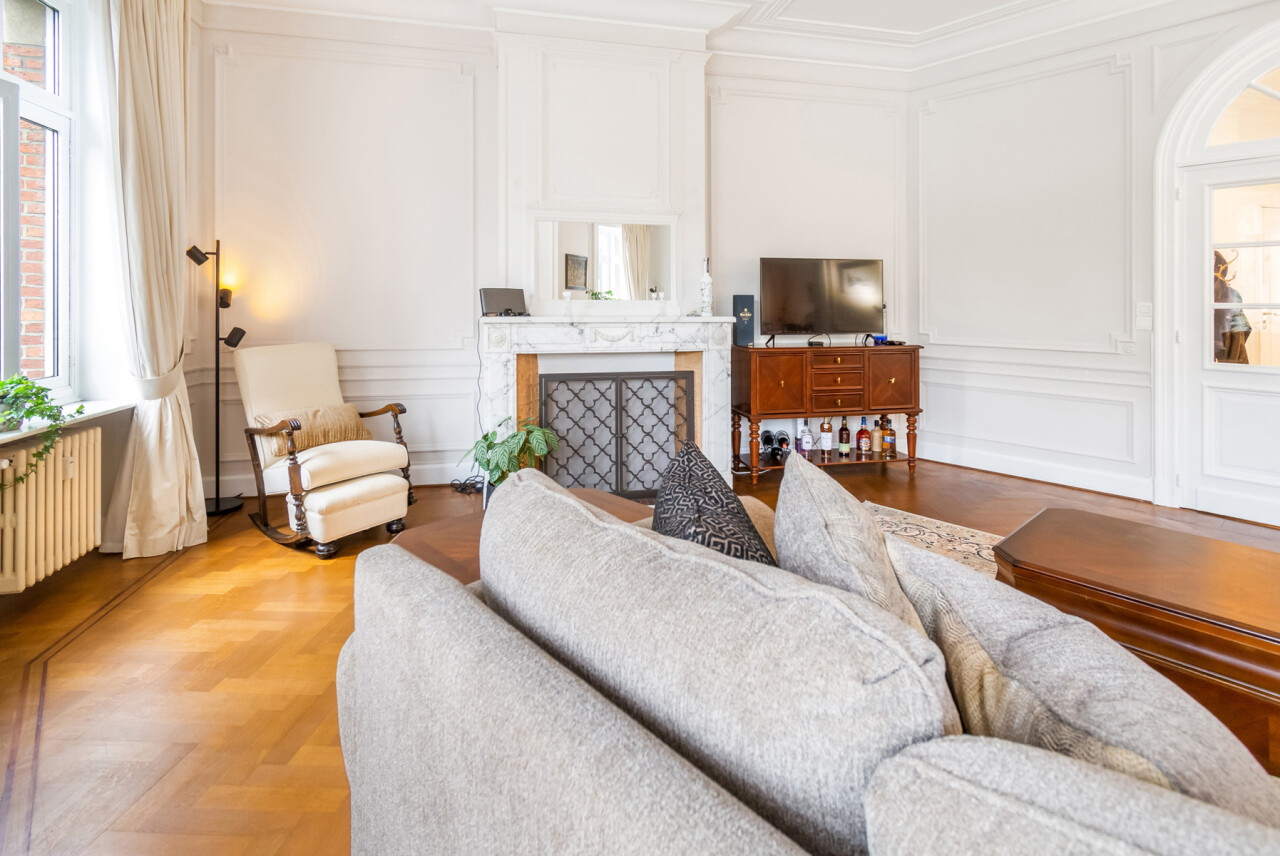 De authentieke visgraat parketvloer zorgt voor een warme en luxueuze uitstraling. Elke kamer straalt elegantie en verfijning uit. De combinatie van authentieke elementen en moderne luxe, bieden een uitzonderlijke kans voor wie op zoek is naar een ruim appartement.