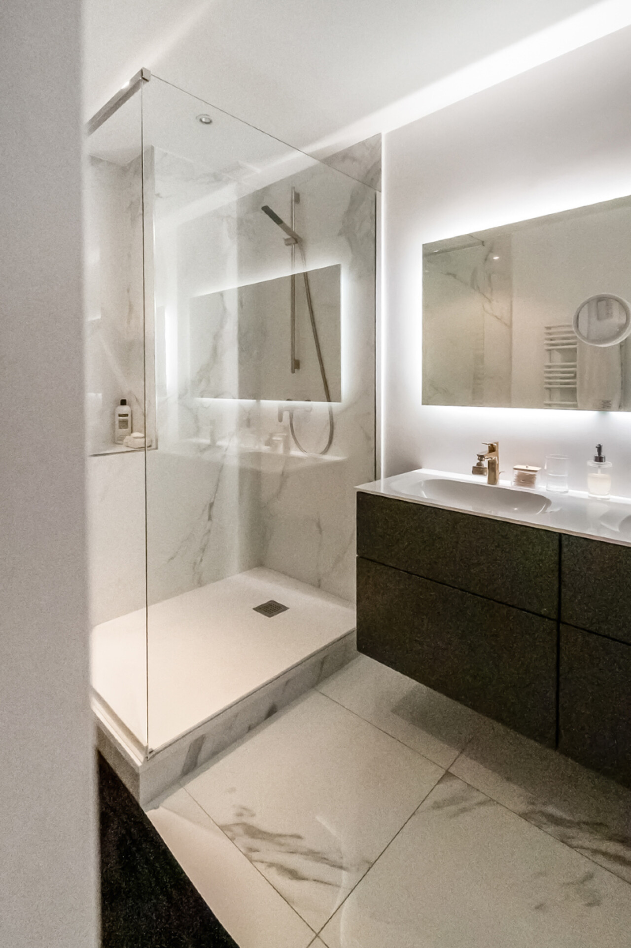De nachthal leidt naar de privévertrekken, waar de drie ruime slaapkamers zich bevinden. De master bedroom heeft een ensuite badkamer, uitgerust met luxueuze voorzieningen zoals een inloopdouche, een bad en dubbele wastafels. De grote dressing zorgt voor voldoende opbergruimte. De tweede slaapkamer beschikt eveneens over een eigen badkamer. Verder is er nog een ruime derde slaapkamer aanwezig.