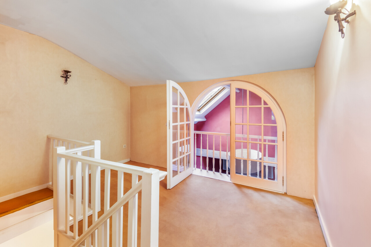 In het landelijke Meise bevindt zich deze karaktervolle villa, gelegen op een indrukwekkend domein met een aanhorend stuk weiland van 18 are. De woning ademt authenticiteit en charme, en biedt volop mogelijkheden voor renovatie en personalisatie. Ideaal voor wie ruimte, natuur en comfort wil combineren.
