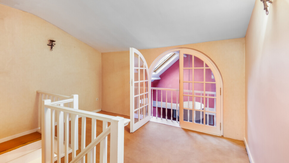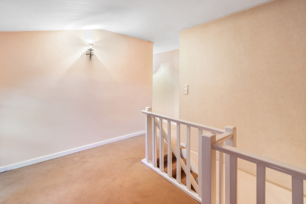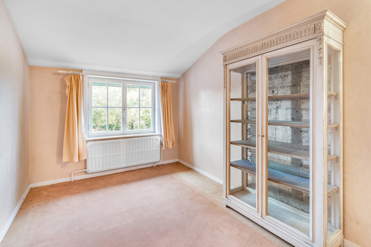 In het landelijke Meise bevindt zich deze karaktervolle villa, gelegen op een indrukwekkend domein met een aanhorend stuk weiland van 18 are. De woning ademt authenticiteit en charme, en biedt volop mogelijkheden voor renovatie en personalisatie. Ideaal voor wie ruimte, natuur en comfort wil combineren.