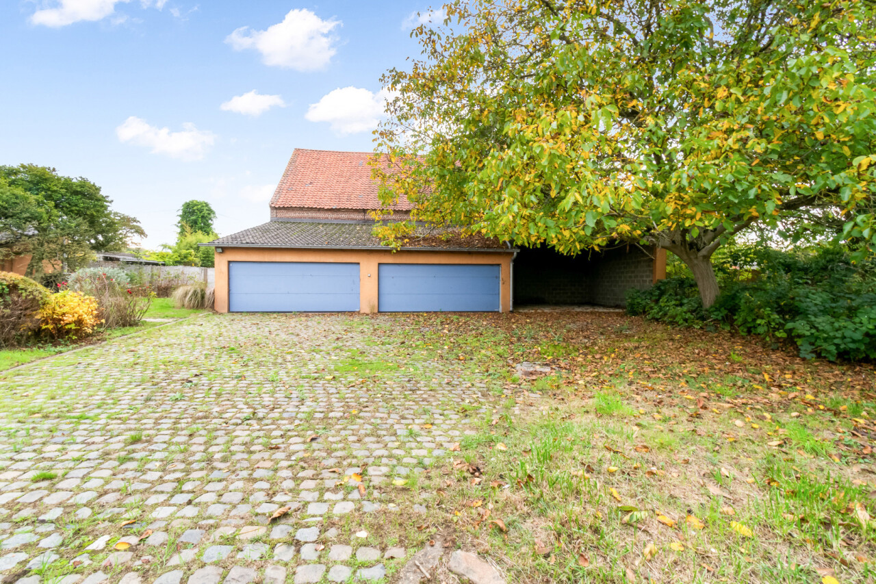 Bij aankomst valt de openheid van het terrein meteen op, met een verzorgde oprit en ruime parkeergelegenheid achteraan. Twee dubbele garageboxen met automatische poorten en een zeer hoge carport maken het geheel compleet.