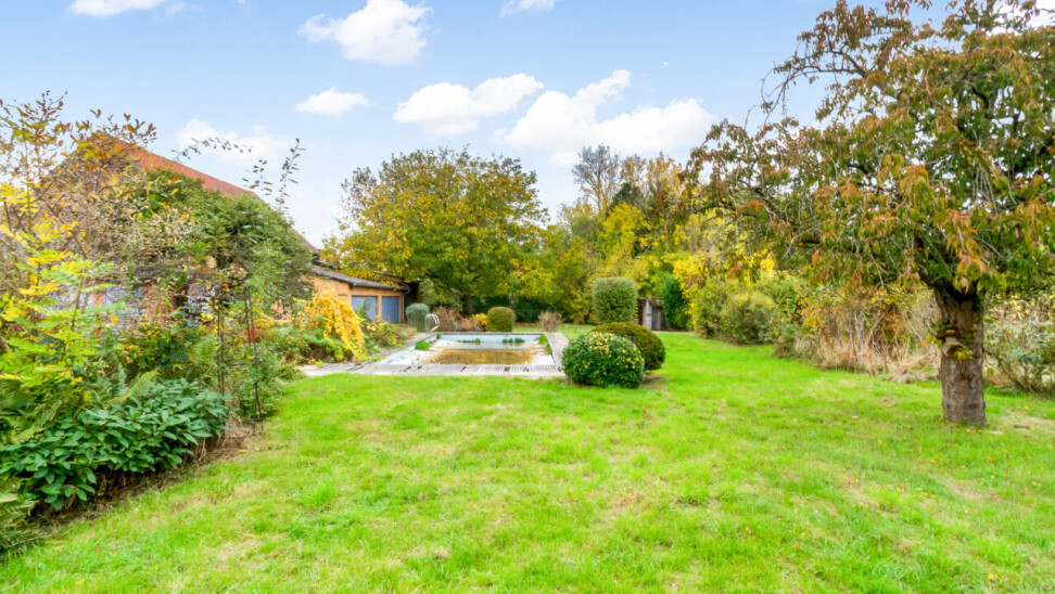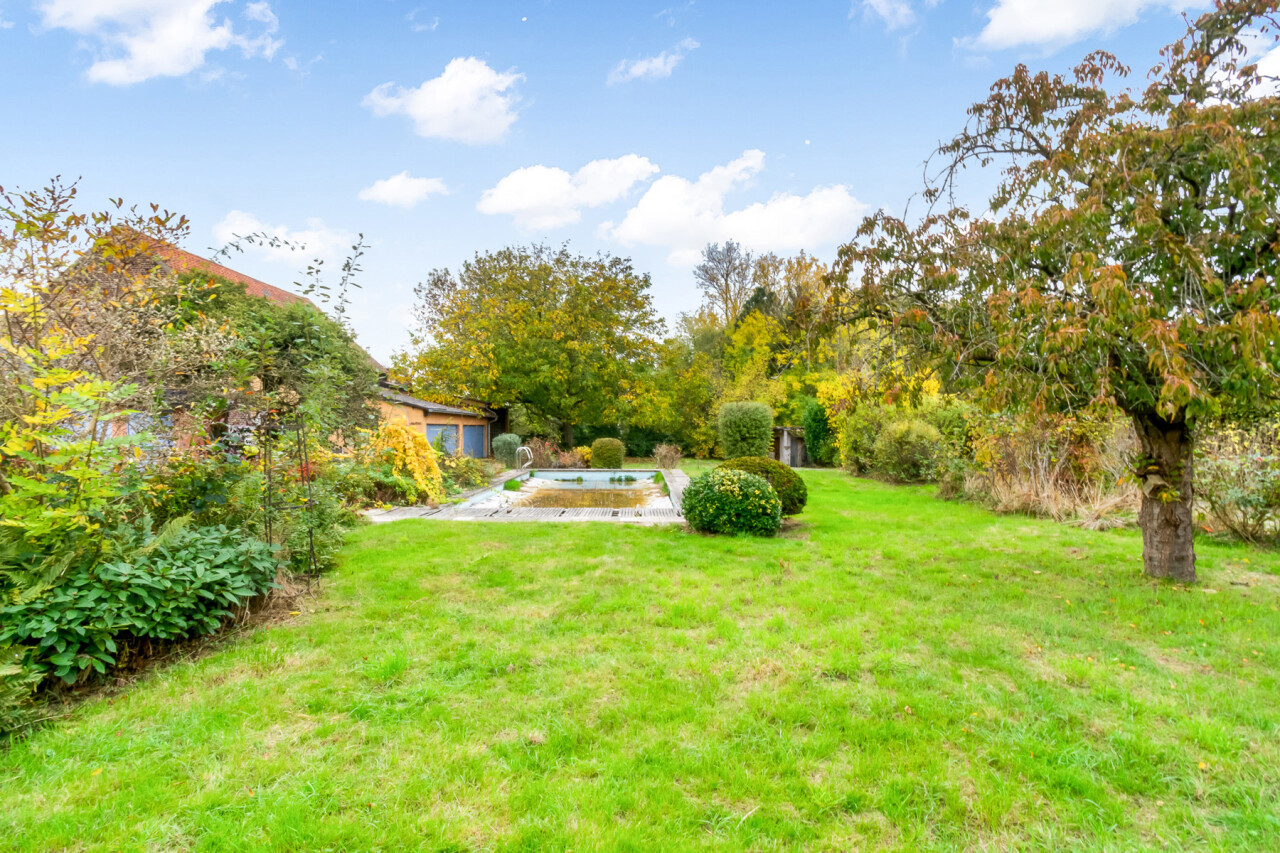 De villa heeft een riante tuin, met het zwembad als centrale blikvanger, omgeven door groen, een zonneterras en veel privacy. De tuin loopt verder naar de paardenaccommodatie, met twee stallen en een weide van 18 are.